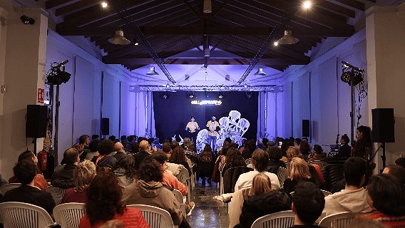 Ambiente de fiesta en versión escénica: artistas, público, risas y cultura navegando en la misma marea.