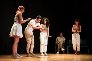 En conectar, hace uniones, ligaduras y conexiones entre escenas, historias, momentos y personas. Un formato de improvisación, donde tienen cabida escenas de comedia, a momentos de interacción con el público, pasando por la crítica social, escenas dramáticas, poéticas…